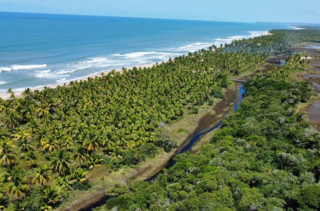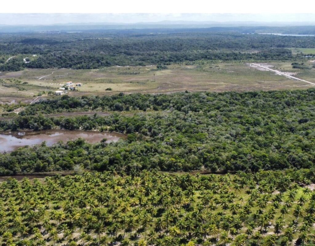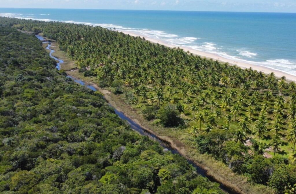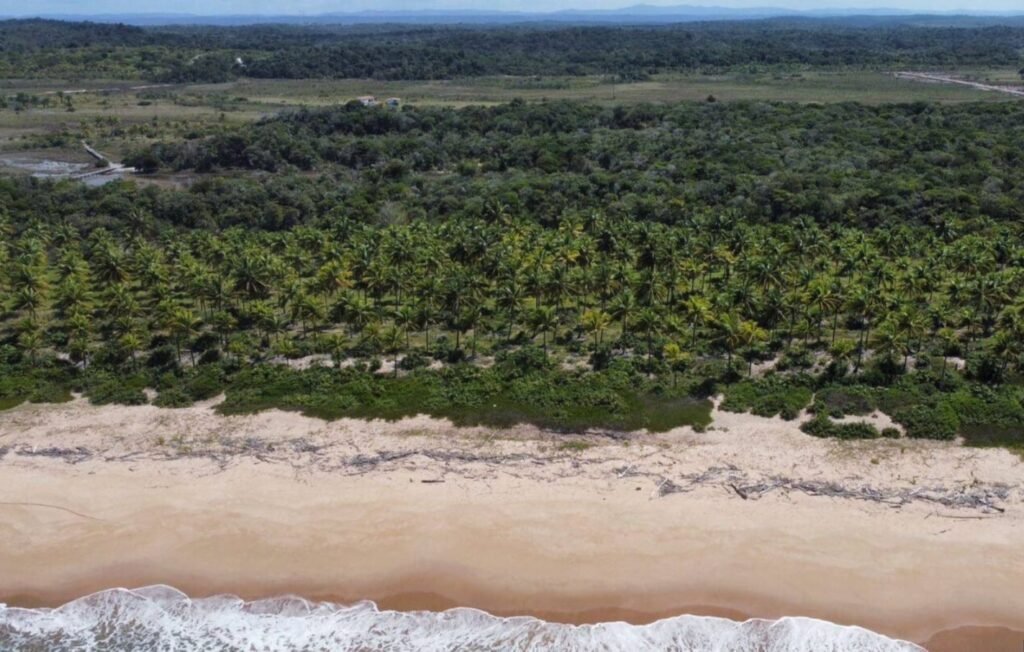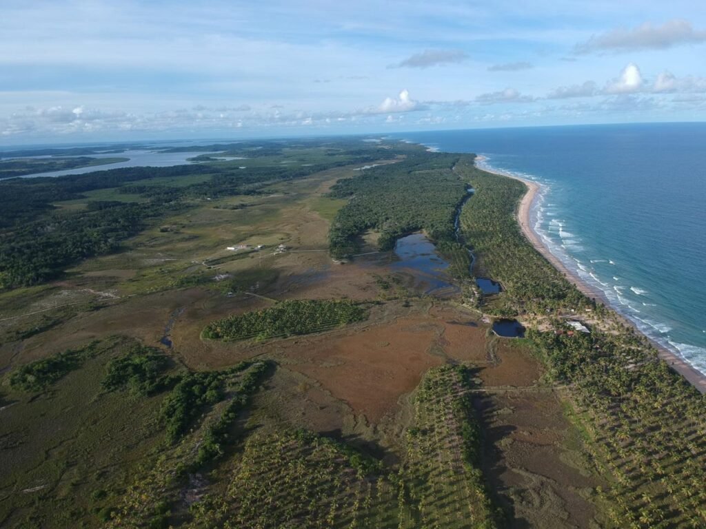 Terreno localizado na Praia de Algodões – Maraú Bahia, medindo 50 metros em frente a praia (pe na areia) x 400 metros de frente a fundo. Área total 20.000 m2.